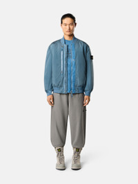 Bomber jacket in iridescent Nylon Metal made from ECONYL® regenerated yarns, featuring PrimaLoft® padding and two-way zipper. Garment dyed with a double color recipe and anti-drop. FABRIC RESEARCH AND TREATMENT Bomber jacket in Stone Island's iridescent Nylon Metal fabric. The evolution of this iconic fabric sees the use of ECONYL® regenerated yarns: the life-ended nylon, pre- and post-consumer, is recycled with a complex depolymerization process to create this fiber that features the same intrinsic characteristics of nylon from fossil raw material. Garment dyed with a double color recipe and the addition of a special anti-drop agent. Quilted inner layer padded with PrimaLoft®. STYLE AND FIT Ribbed bomber collar. On front right, vertical two-way zipper that opens two-compartment pocket with standing entrances. Standing welt pockets with snap and nylon trim. One inner pocket with button and Compass logo embroidery. Stone Island badge on left sleeve. Elasticated ribbed cuffs and bottom band. Two-way zipper fastening with nylon tape detail on left side. COMPOSITION AND CARE External Fabric: 100% Polyamide / Nylon. Ribbing: 94% Polyamide / Nylon 6% Elastane / Spandex. Lining: 100% Polyamide / Nylon. Padding: 100% Polyester