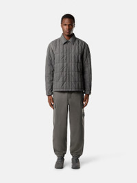 Coach jacket in recycled nylon tela with soft and comfortable feel, featuring PrimaLoft®-TC padding, snap pockets, adjustable cuffs, and snap fastening. Garment dyed with anti-drop. FABRIC RESEARCH AND TREATMENT Ghost pieces, derived from the concept of camouflage, are totally monochromatic. Even the Stone Island badge is created in a special monocolor version to blend in with the garment. Coach jacket made of a special recycled nylon tela. Thanks to its composition and to the brushing treatment, it offers a feeling of softness and comfort similar to cotton but with the durability and resistance specific to nylon fibers. Padded with PrimaLoft®-TC, an exclusive blend of high-performance insulating fibers, 70% recycled, engineered with Stone Island for garment dyeing. Garment dyed with the addition of an anti-drop agent. STYLE AND FIT Standing hand pockets with concealed snap. Two internal pockets. Stone Island Ghost badge on left sleeve. Tightening strap at cuffs. Snap fastening. COMPOSITION AND CARE External Fabric: 100% Polyamide / Nylon. Lining: 100% Polyamide / Nylon. Padding: 100% Polyester