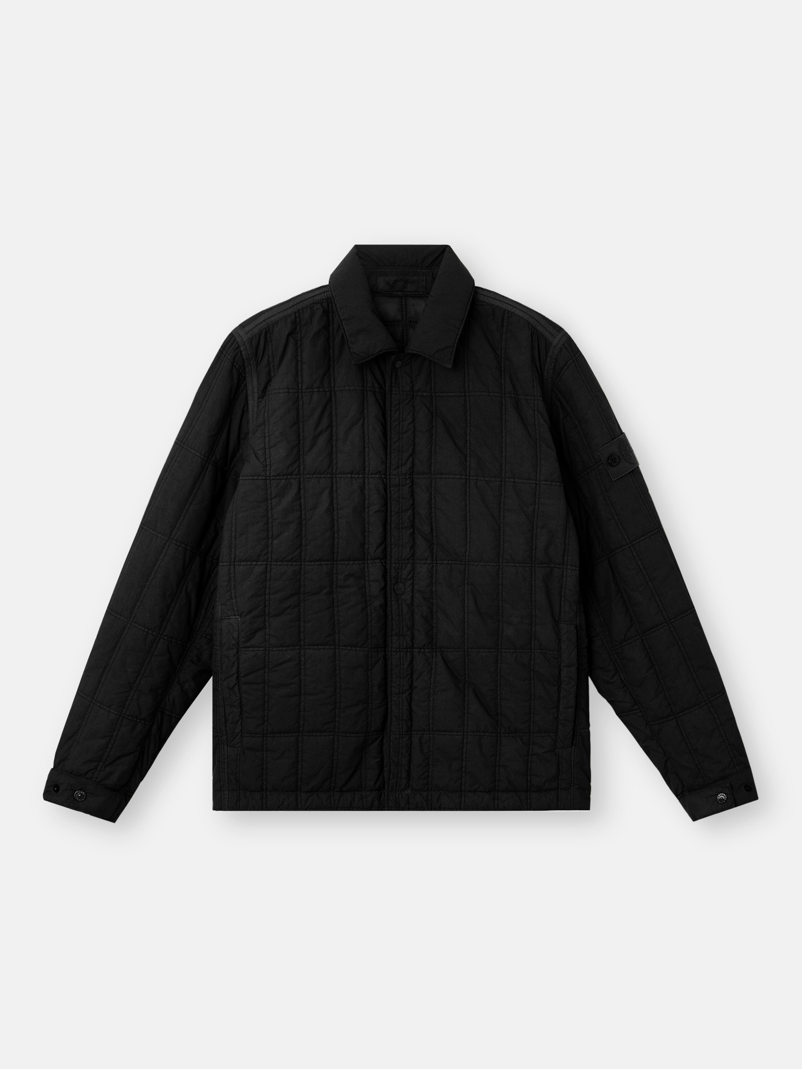 Coach jacket in recycled nylon tela with soft and comfortable feel, featuring PrimaLoft®-TC padding, snap pockets, adjustable cuffs, and snap fastening. Garment dyed with anti-drop. FABRIC RESEARCH AND TREATMENT Ghost pieces, derived from the concept of camouflage, are totally monochromatic. Even the Stone Island badge is created in a special monocolor version to blend in with the garment. Coach jacket made of a special recycled nylon tela. Thanks to its composition and to the brushing treatment, it offers a feeling of softness and comfort similar to cotton but with the durability and resistance specific to nylon fibers. Padded with PrimaLoft®-TC, an exclusive blend of high-performance insulating fibers, 70% recycled, engineered with Stone Island for garment dyeing. Garment dyed with the addition of an anti-drop agent. STYLE AND FIT Standing hand pockets with concealed snap. Two internal pockets. Stone Island Ghost badge on left sleeve. Tightening strap at cuffs. Snap fastening. COMPOSITION AND CARE External Fabric: 100% Polyamide / Nylon. Lining: 100% Polyamide / Nylon. Padding: 100% Polyester