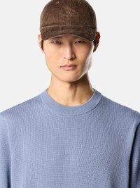 Knit crewneck sweater in micro stitch soft organic cotton, featuring a reverse stitch band along the armholes and ribbed trims. Gauge 14. FABRIC RESEARCH AND TREATMENT Knit crewneck sweater in micro stitch soft organic cotton. Gauge 14. STYLE AND FIT Ribbed neckline. Reverse stitch band along armholes. Ribbed cuffs and bottom band. Loose fit. COMPOSITION AND CARE 100% Cotton