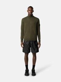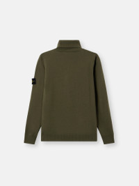 Knit turtleneck sweater in light RWS pure wool featuring a ribbed collar, cuffs, and bottom band. Gauge 14. FABRIC RESEARCH AND TREATMENT Knit turtleneck sweater in light RWS pure wool. Stockinette stitch. Gauge 14. STYLE AND FIT Ribbed collar. Stone Island badge on left sleeve. Ribbed cuffs and bottom band. Regular fit. COMPOSITION AND CARE 100% Virgin Wool