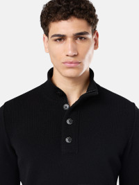 Knit half-zipper sweater in a lamb wool and nylon blend featuring a felt-lined button placket, ribbed collar with inner felt trim, and reverse stitch bands. Gauge 7. FABRIC RESEARCH AND TREATMENT Knit half-zipper sweater in lamb wool and nylon blend. Stockinette stitch. Gauge 7. STYLE AND FIT Ribbed stand collar with inner felt trim and zipper neck fastening under button felt-lined placket. Reverse stitch band at shoulders and along armholes. Stone Island badge on left sleeve. Ribbed cuffs and bottom band. Regular fit. COMPOSITION AND CARE 80% Wool 20% Polyamide / Nylon