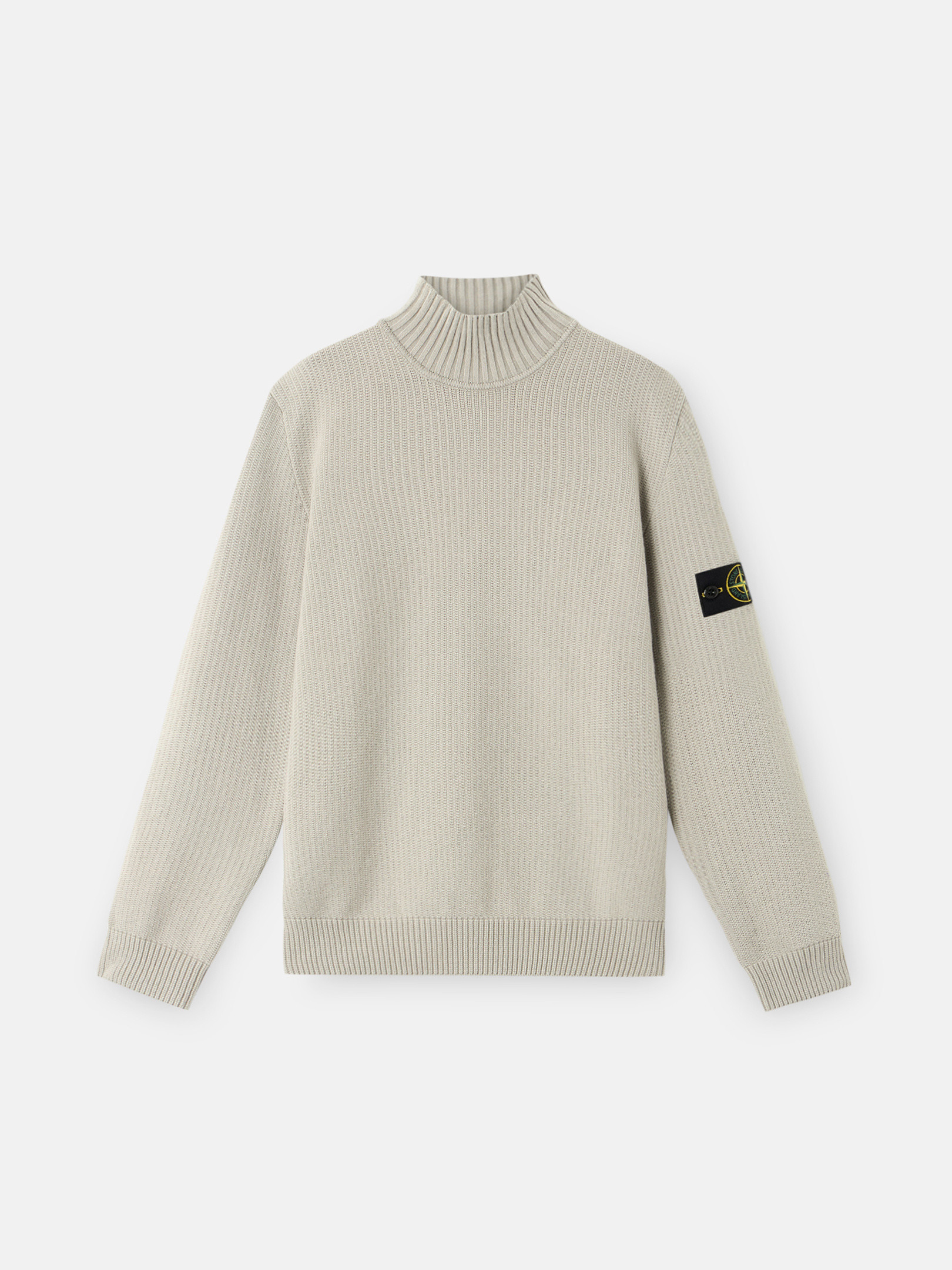 Knit turtleneck sweater in winter cotton with half fisherman’s rib, ribbed collar, cuffs, and bottom band. Gauge 7. FABRIC RESEARCH AND TREATMENT Knit turtleneck sweater in winter cotton. Half fisherman’s rib. Gauge 7. STYLE AND FIT Ribbed collar. Stone Island badge on left sleeve. Ribbed cuffs and bottom band. Loose fit. COMPOSITION AND CARE 79% Cotton 21% Elastomultiester / Elasterel-p