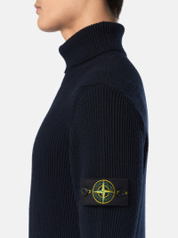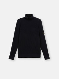 Knit turtleneck sweater in full rib RWS wool featuring a ribbed collar, finely ribbed cuffs with horizontal stitching, and a finely ribbed bottom band. Gauge 12. FABRIC RESEARCH AND TREATMENT Knit turtleneck sweater in full rib RWS wool. Gauge 12. STYLE AND FIT Ribbed collar. Stone Island badge on left sleeve. Finely ribbed cuffs with horizontal stitching along hem. Finely ribbed bottom band. Regular fit. COMPOSITION AND CARE 100% Virgin Wool
