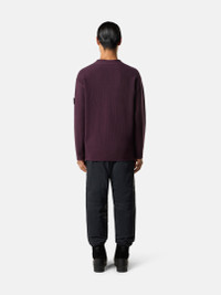 Knit mock neck sweater in moss stitch cotton-nylon blend, featuring a rolled neckline, contrasting bands, and finely ribbed trims. Gauge 7. FABRIC RESEARCH AND TREATMENT Knit mock neck sweater in cotton-nylon blend. Moss stitch. Gauge 7. STYLE AND FIT Mock neckline with rolled edge in contrasting stitch. Reverse stitch band on shoulders and along armholes. Stone Island badge on left sleeve. Finely ribbed trim on cuffs and bottom band. Oversized fit. COMPOSITION AND CARE 74% Cotton 26% Polyamide / Nylon