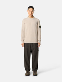 Knit crewneck sweater in lambswool featuring raised armhole seams, reverse stitch bands, and ribbed trims. Gauge 7. FABRIC RESEARCH AND TREATMENT Crewneck knit in lambswool. Stockinette stitch. Gauge 7. STYLE AND FIT Ribbed neckline. Reverse stocking stitch band at shoulders and front armhole. Raised seams at armholes. Stone Island badge on left sleeve. Ribbed cuffs and bottom band. Regular fit. COMPOSITION AND CARE 80% Wool 20% Polyamide / Nylon
