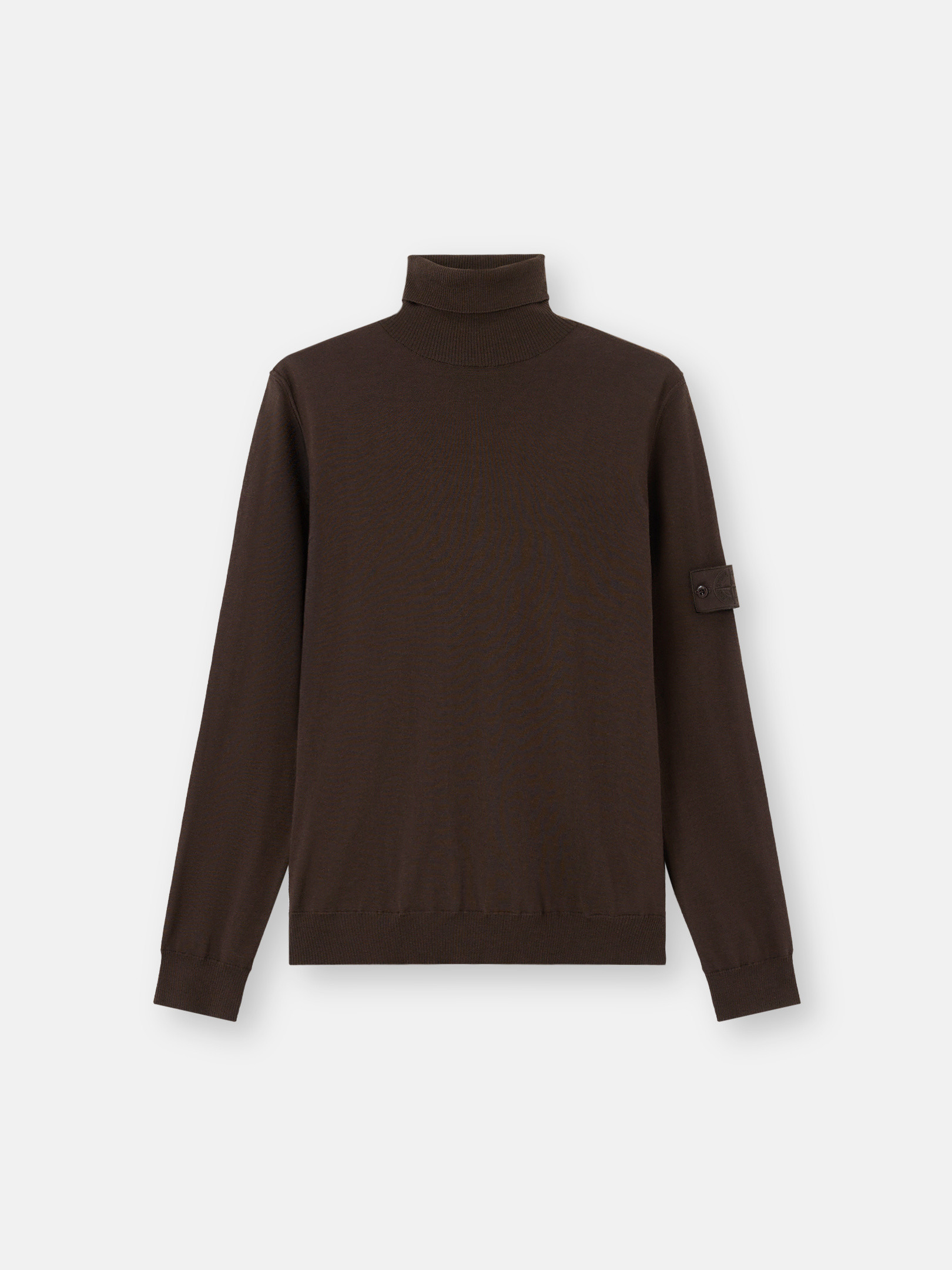 Knit turtleneck sweater in light RWS pure wool with stockinette stitch and ribbed trims. Gauge 14. FABRIC RESEARCH AND TREATMENT Ghost pieces, derived from the concept of camouflage, are totally monochromatic. Even the Stone Island badge is created in a special monocolor version to blend in with the garment. Knit turtleneck sweater in light RWS pure wool. Stockinette stitch. Gauge 14. STYLE AND FIT Ribbed collar. Stone Island Ghost badge on left sleeve. Ribbed cuffs and bottom band. Regular fit. COMPOSITION AND CARE 100% Virgin Wool