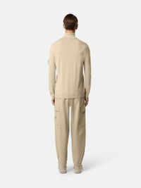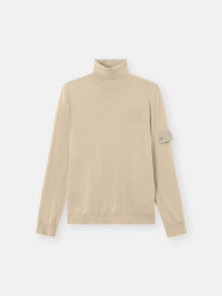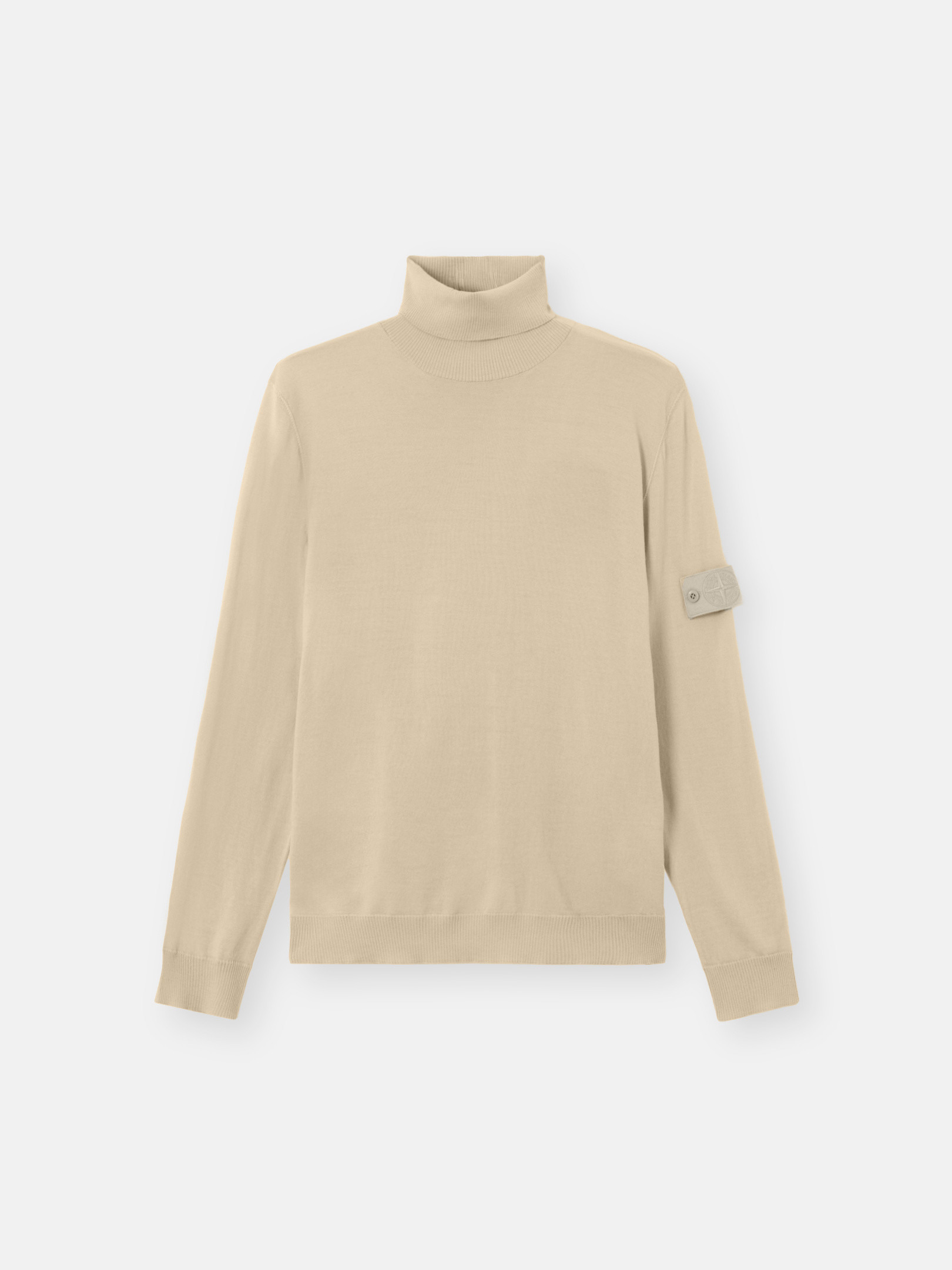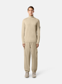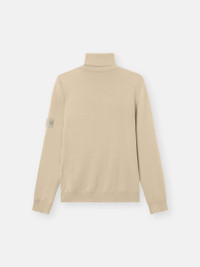 Knit turtleneck sweater in light RWS pure wool with stockinette stitch and ribbed trims. Gauge 14. FABRIC RESEARCH AND TREATMENT Ghost pieces, derived from the concept of camouflage, are totally monochromatic. Even the Stone Island badge is created in a special monocolor version to blend in with the garment. Knit turtleneck sweater in light RWS pure wool. Stockinette stitch. Gauge 14. STYLE AND FIT Ribbed collar. Stone Island Ghost badge on left sleeve. Ribbed cuffs and bottom band. Regular fit. COMPOSITION AND CARE 100% Virgin Wool