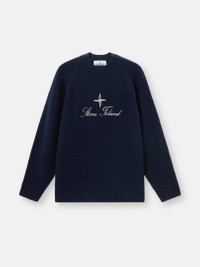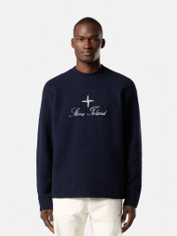 Knit crewneck sweater in wool nylon boucle, featuring an embroidered archival Stone Island logo, raglan sleeves, and ribbed trims. Gauge 5. FABRIC RESEARCH AND TREATMENT Knit crewneck sweater in wool nylon boucle. Stockinette stitch. Gauge 5. STYLE AND FIT Ribbed neckline. Embroidered archival Stone Island logo at chest. Ribbed cuffs and hem. Oversized fit. COMPOSITION AND CARE 58% Wool 42% Polyamide / Nylon