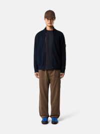 Zipper-up sweater in ribbed soft organic cotton, featuring a stand collar, reverse stitch inserts, finely ribbed bands, and ribbed trims. Gauge 12. FABRIC RESEARCH AND TREATMENT Knit zipper-up sweater in ribbed soft organic cotton. Gauge 12. STYLE AND FIT Ribbed stand collar. Reverse stitch triangular inserts and finely ribbed bands on back shoulders. Stone Island badge on left sleeve. Ribbed cuffs and bottom band. Two-way zipper fastening. Regular fit. COMPOSITION AND CARE 100% Cotton