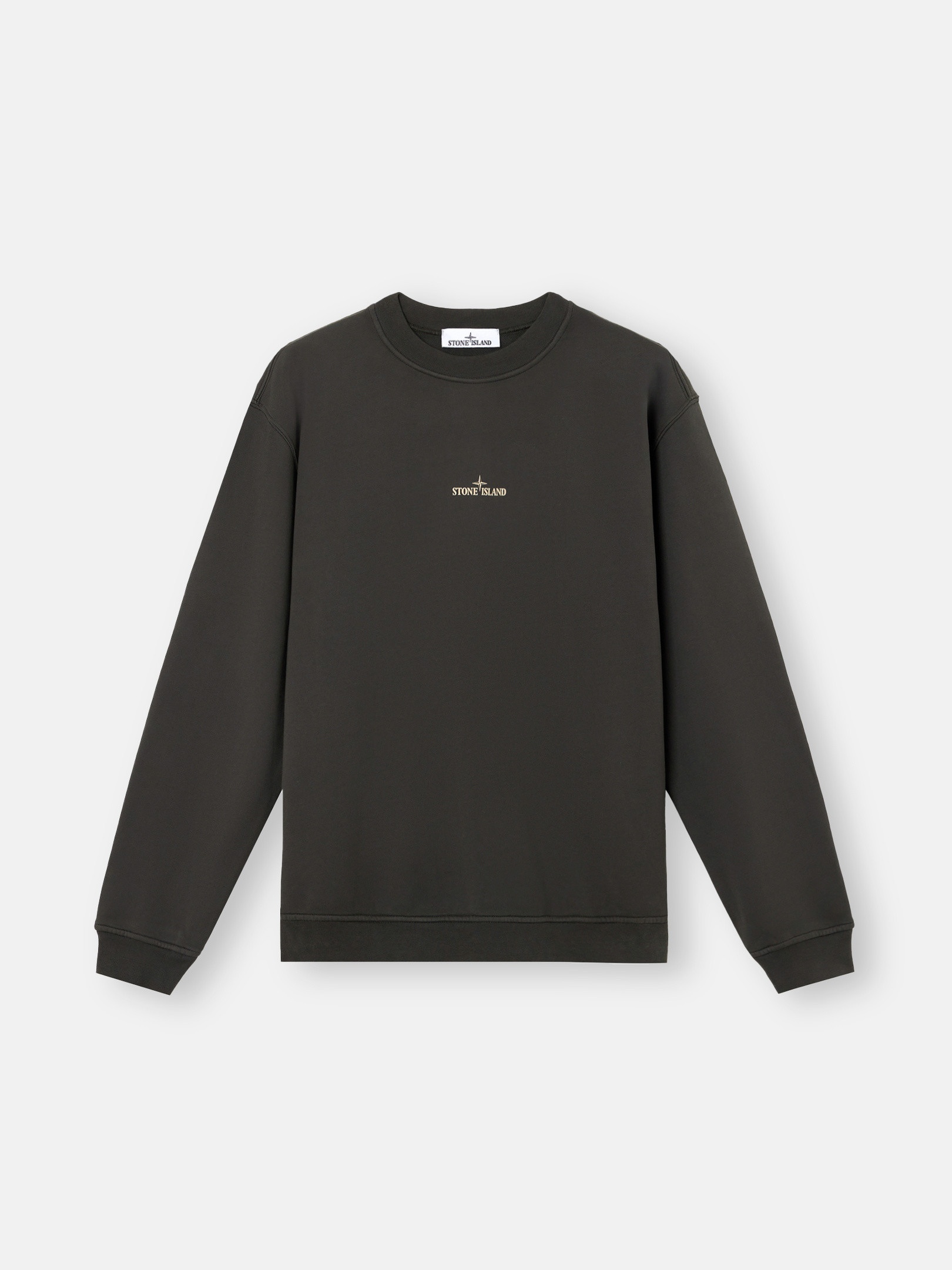 Crewneck sweatshirt in cotton fleece, featuring the Stone Island logo on the chest, a large Compass print with text on the back, and elasticated cuffs. Garment dyed. FABRIC RESEARCH AND TREATMENT Crewneck sweatshirt in cotton fleece with ‘Industrial Four’ print. Garment dyed. STYLE AND FIT Ribbed neckline. Stone Island logo print on chest. Elasticated ribbed cuffs and bottom band. On back, large print of Stone Island Compass logo and accompanying text. Oversized fit. COMPOSITION AND CARE External Fabric: 100% Cotton. Ribbing: 99% Cotton 1% Elastane / Spandex