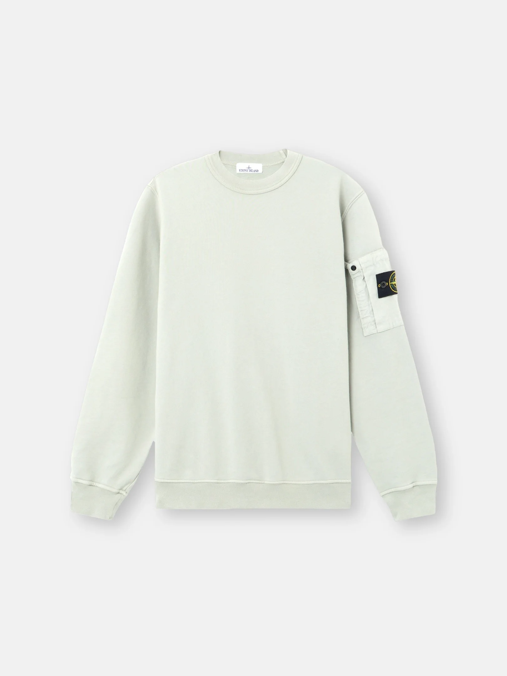 Crewneck sweatshirt in cotton fleece featuring the seasonal ripstop patch pocket with pleat detail on the sleeve, finished with ribbed trims. Midweight. Garment dyed. FABRIC RESEARCH AND TREATMENT Crewneck sweatshirt in cotton fleece with cotton ripstop seasonal pocket. Midweight. Garment dyed. STYLE AND FIT Elasticated ribbed neckline, cuffs, and bottom band. Cotton ripstop patch pocket on left sleeve with hook-and-loop fastening along top and side, snap and loop at corner, pleat detail, and Stone Island badge. Regular fit. COMPOSITION AND CARE External Fabric: 100% Cotton Pocket: 100% Cotton Ribbing: 99% Cotton 1% Elastane / Spandex