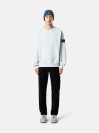 Crewneck sweatshirt in brushed organic cotton fleece featuring oversized raglan sleeves with overlock seams and elasticated ribbed cuffs. Garment dyed. FABRIC RESEARCH AND TREATMENT Crewneck sweatshirt in brushed organic cotton fleece. Garment dyed. STYLE AND FIT Ribbed neckline. Oversized raglan sleeves with overlock seams and frayed edges. Stone Island badge on left sleeve. Elasticated ribbed cuffs and bottom band. Oversized fit. COMPOSITION AND CARE External Fabric: 100% Cotton. Ribbing: 99% Cotton 1% Elastane / Spandex