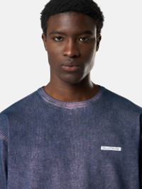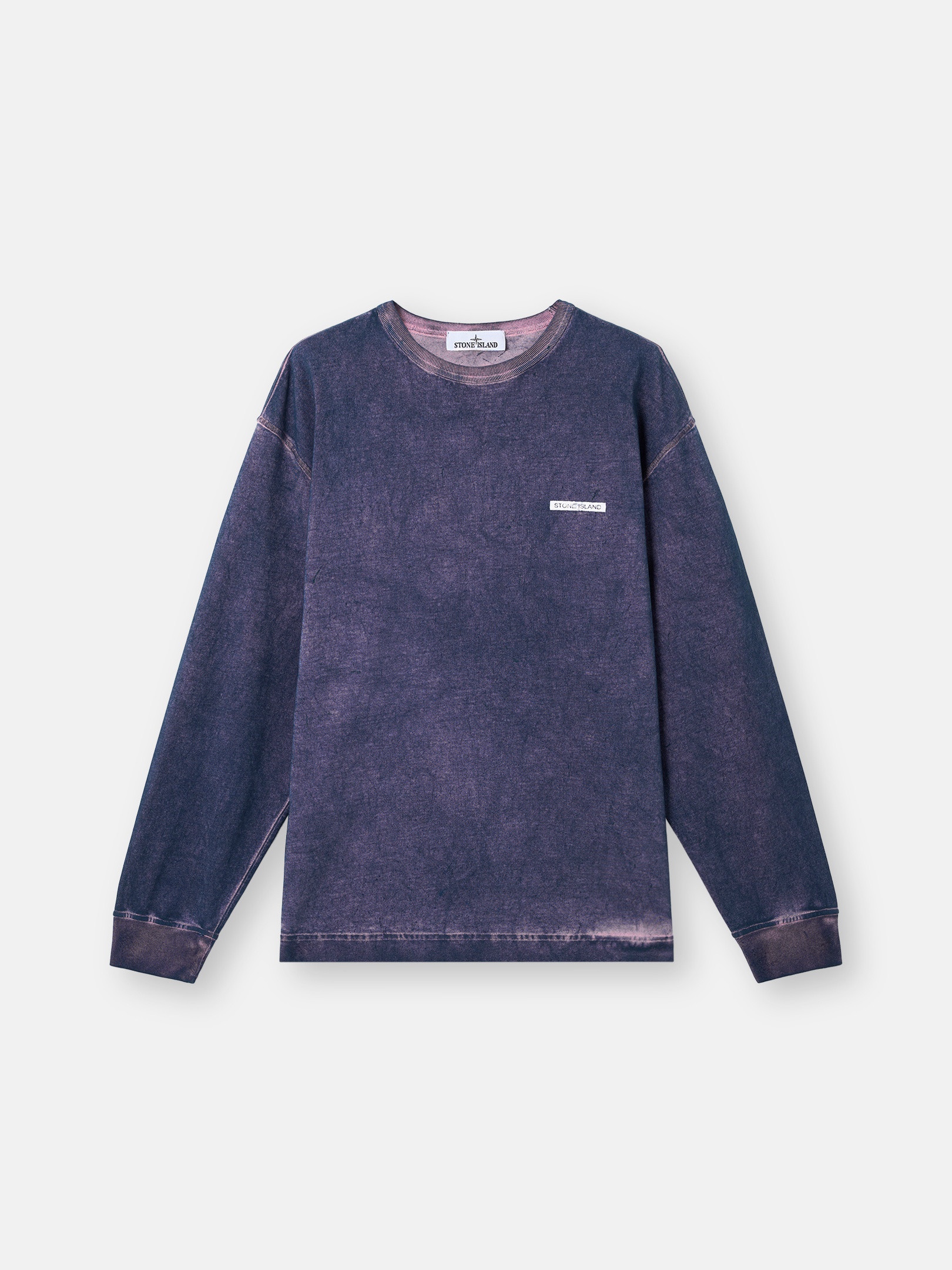 Crewneck sweatshirt in compact organic cotton jersey, featuring reverse Stone Island lettering print on the chest and ribbed trims. Garment dyed. FABRIC RESEARCH AND TREATMENT Crewneck sweatshirt in compact organic cotton jersey with ‘Velo’ effect. Garment dyed. STYLE AND FIT Ribbed neckline. Reverse print of Stone Island lettering on chest. Ribbed cuffs. Regular fit. COMPOSITION AND CARE External Fabric: 100% Cotton. Ribbing: 100% Cotton