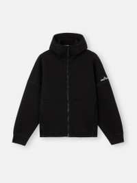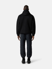 Sweatshirt in scuba fleece featuring a hood with elasticated drawcord, zipper pockets, logo embroidery on the sleeve, and elasticated drawcord in the bottom hem. FABRIC RESEARCH AND TREATMENT Hooded sweatshirt in scuba fleece. STYLE AND FIT Elasticated drawcord in hood. Overlock seams. Standing welt hand pockets with hidden zipper. Inlay under sleeves and down sides. Embroidery of Stone Island logo on left sleeve. Flat cuffs. Elasticated drawcord in bottom hem. Oversized fit. COMPOSITION AND CARE 100% Viscose / Rayon