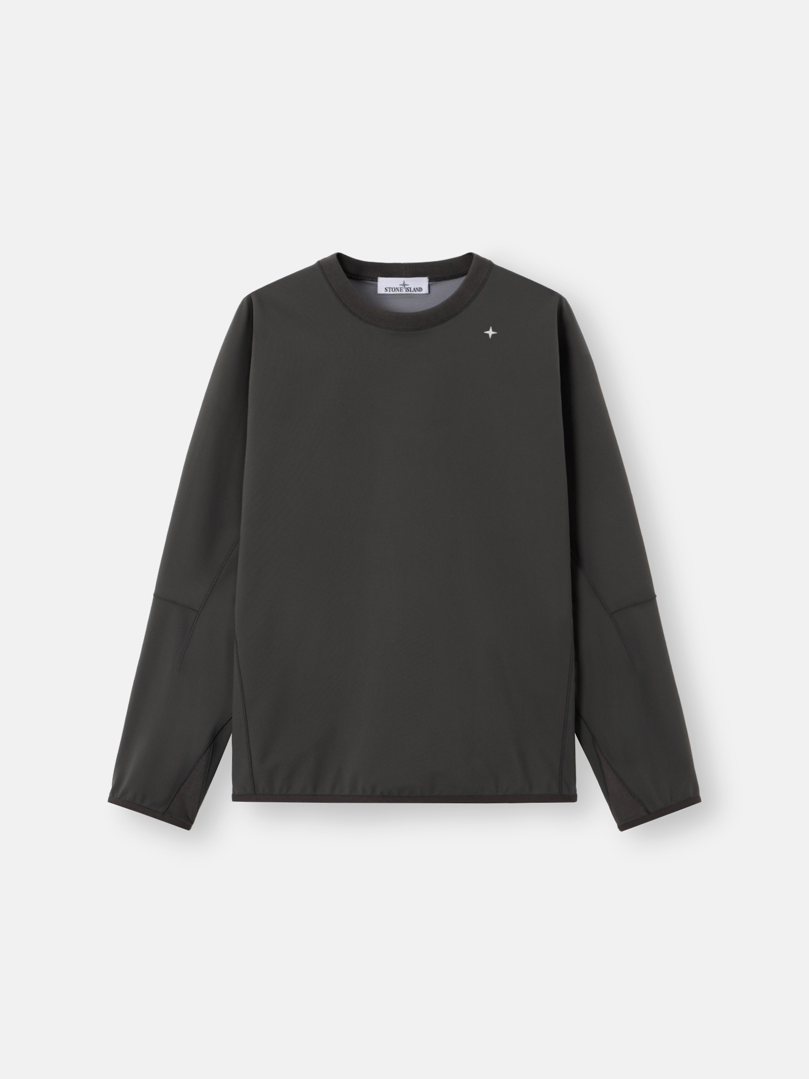 Long-sleeve shirt in technical jersey stretch nylon and polyester with raglan back sleeves, Stone Island star embroidery, and elasticated trim at cuffs and bottom hem. FABRIC RESEARCH AND TREATMENT Long-sleeve crewneck shirt in technical jersey stretch nylon and polyester. STYLE AND FIT Ribbed neckline. Stone Island star embroidery on chest. Raglan sleeves on back. Ribbed triangular insert at cuffs. Elasticated tape trim at cuffs and bottom hem. Comfort fit. COMPOSITION AND CARE Outer Layer: 76% Polyamide / Nylon 24% Elastane / Spandex. Inner Layer: 100% Polyester. Ribbing: 83% Polyamide / Nylon 15% Polyester 2% Elastane / Spandex
