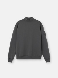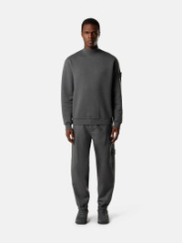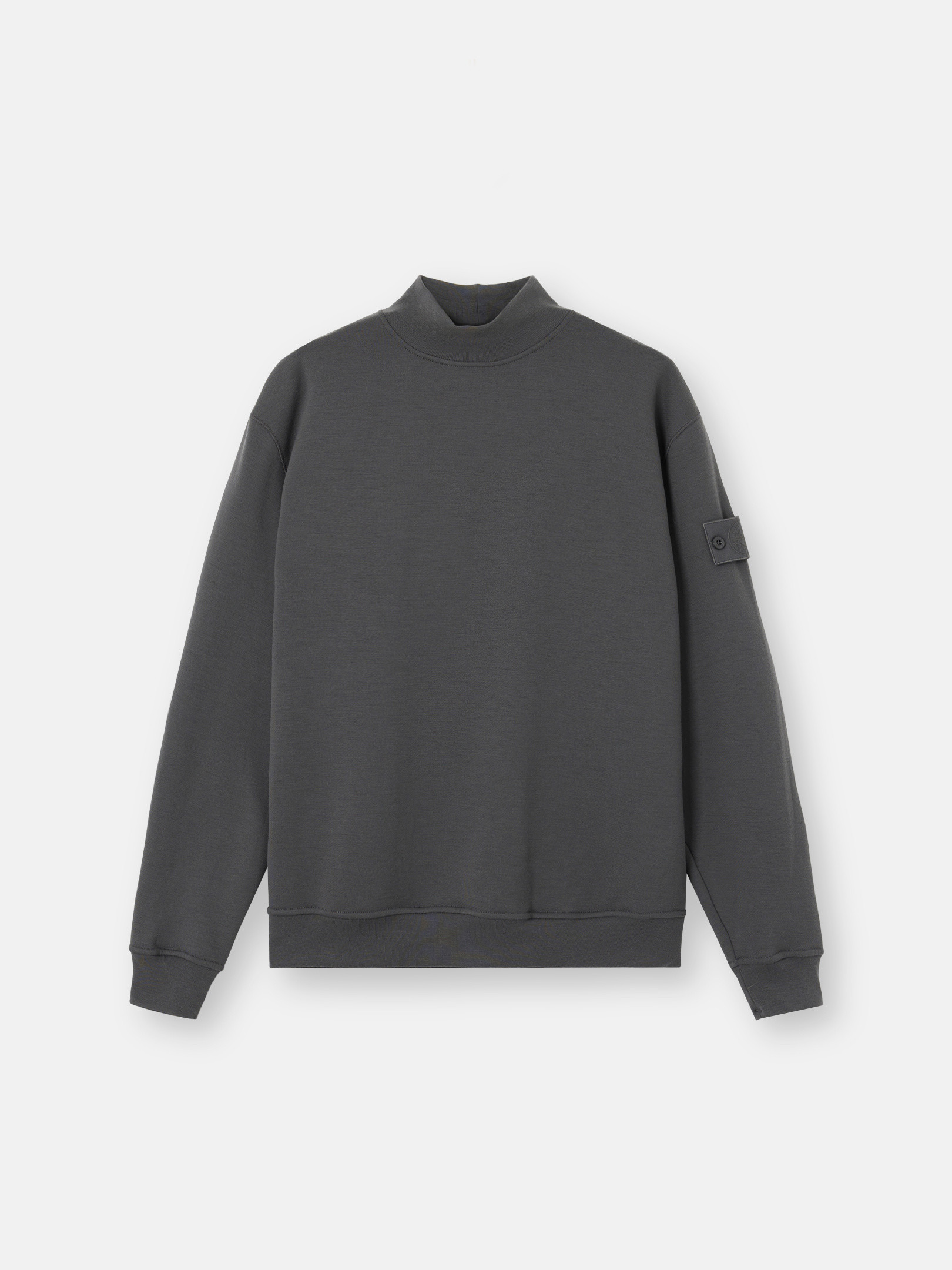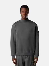 Mock neck sweatshirt in cotton wool fleece with ribbed trims. FABRIC RESEARCH AND TREATMENT Ghost pieces, derived from the concept of camouflage, are totally monochromatic. Even the Stone Island badge is created in a special monocolor version to blend in with the garment. Mock neck sweatshirt in cotton wool fleece. STYLE AND FIT Ribbed mock neckline. Stone Island Ghost badge on left sleeve. Ribbed cuffs and bottom band. Regular fit. COMPOSITION AND CARE External Fabric: 60% Wool 40% Cotton. Ribbing: 94% Virgin Wool 6% Elastane / Spandex