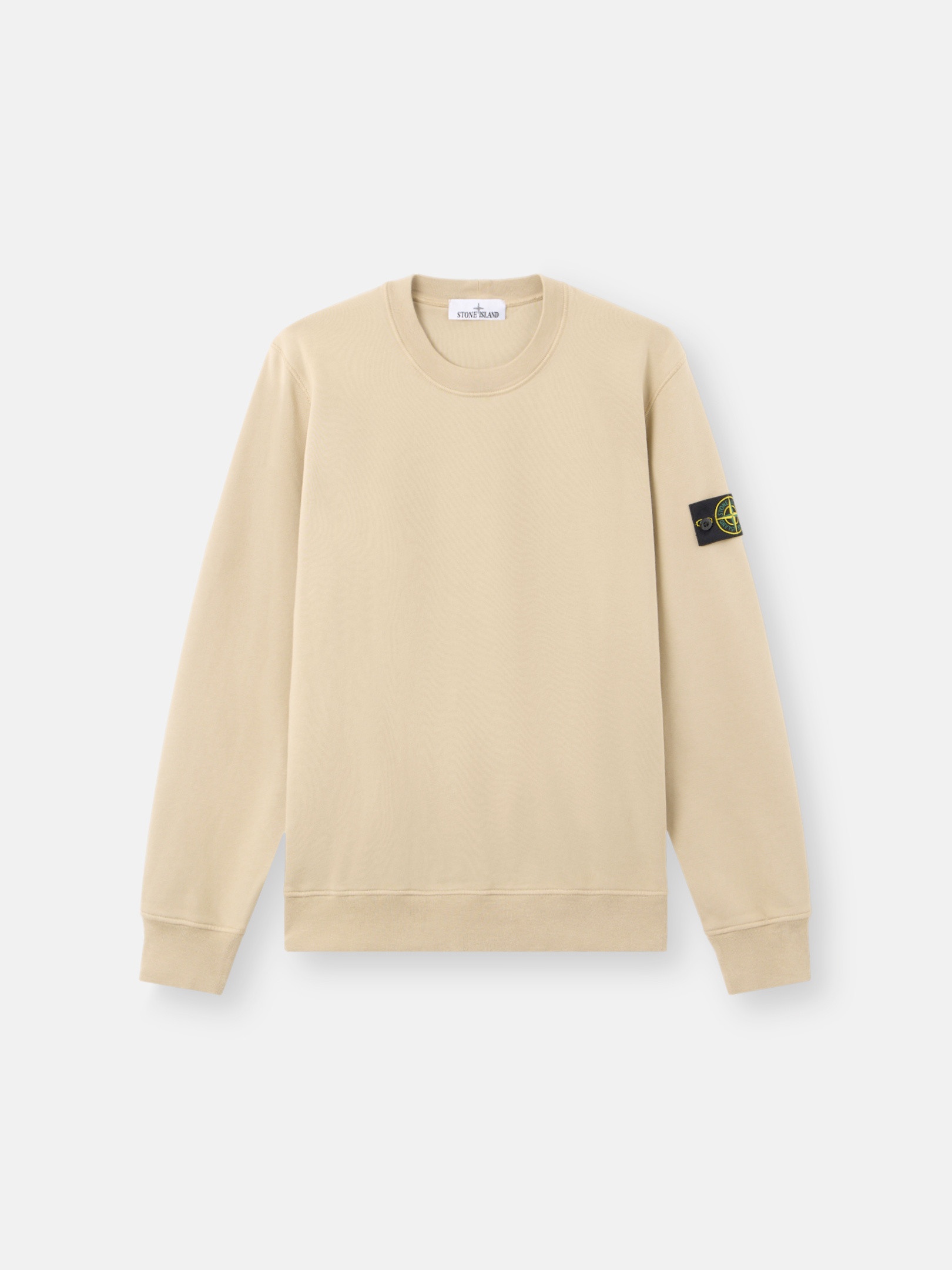 Crewneck sweatshirt in organic cotton fleece featuring overlock seams, a lunette with inner lining, and elasticated ribbed trims. Garment dyed. FABRIC RESEARCH AND TREATMENT Crewneck sweatshirt in organic cotton fleece. Garment dyed. STYLE AND FIT Ribbed neckline. Overlock seams. Stone Island badge on left sleeve. Lunette under back neckline with inner lining. Elasticated ribbed cuffs and bottom band. Regular fit. COMPOSITION AND CARE External Fabric: 100% Cotton. Ribbing: 99% Cotton 1% Elastane / Spandex