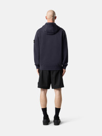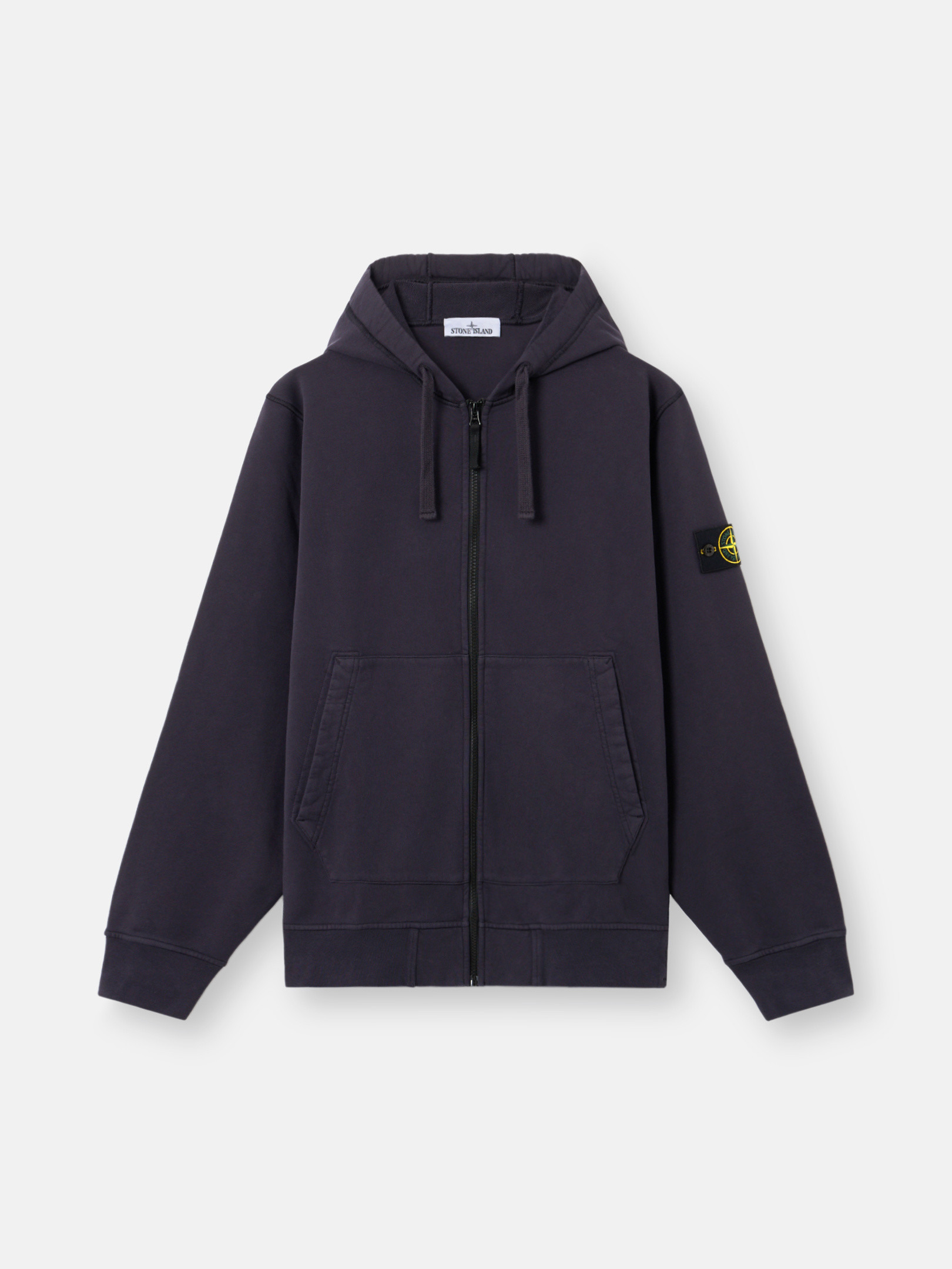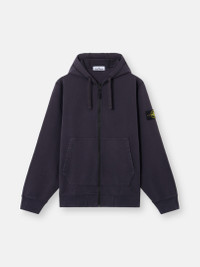 Hooded zipper-up sweatshirt in organic cotton fleece featuring hand pockets with slanted entrance and elasticated ribbed trims. Garment dyed. FABRIC RESEARCH AND TREATMENT Hooded zipper-up sweatshirt in organic cotton fleece. Garment dyed. STYLE AND FIT Drawstring hood. Patch hand pockets with slanted entrance. Stone Island badge on left sleeve. Elasticated ribbed cuffs and bottom band. Zipper fastening. Regular fit. COMPOSITION AND CARE External Fabric: 100% Cotton. Ribbing: 98% Cotton 2% Elastane / Spandex