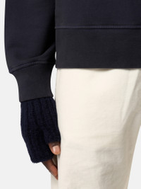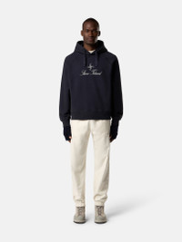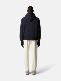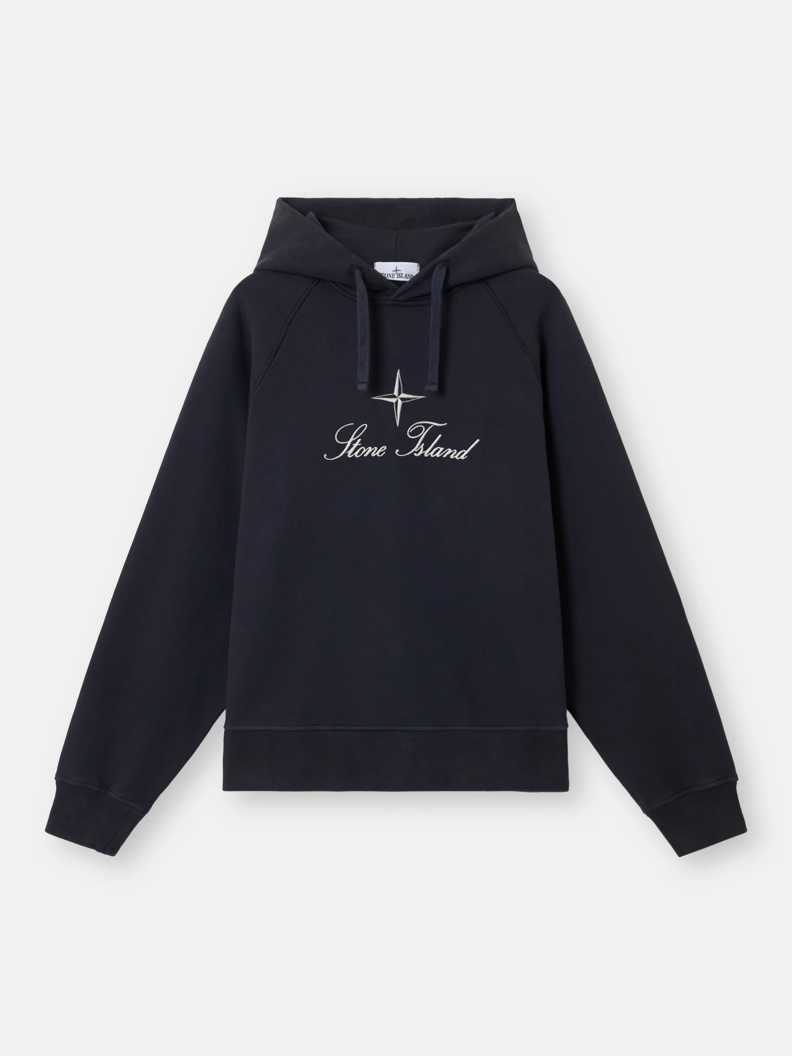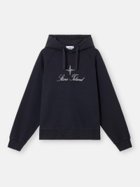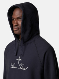 Hooded sweatshirt in brushed organic cotton fleece, featuring an archival Stone Island logo, raglan sleeves, pockets, and ribbed trims. Garment dyed. FABRIC RESEARCH AND TREATMENT Hooded sweatshirt in brushed organic cotton fleece. Garment dyed. STYLE AND FIT Drawstring hood. Raglan sleeves. Embroidered archival Stone Island logo at chest. Ribbed cuffs and hem. Oversized fit. COMPOSITION AND CARE Garment: 100% Cotton. Ribbing: 99% Cotton 1% Elastane / Spandex