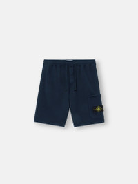 Sweatshorts in organic cotton fleece, featuring zipper and snap pockets and an elasticated drawstring waistband. Midweight. Garment dyed. FABRIC RESEARCH AND TREATMENT Sweatshorts in organic cotton fleece. Midweight. Garment dyed. STYLE AND FIT Vertical hand pockets. Patch cargo pocket on left leg with concealed zipper fastening and Stone Island badge. Angled back pocket with fixed flap and concealed snap. Elasticated ribbed waistband with external drawstring. Regular fit. COMPOSITION AND CARE External Fabric: 100% Cotton Ribbing: 99% Cotton 1% Elastane / Spandex Pocket Bag: 100% Cotton