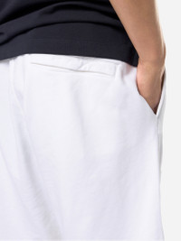 Bermuda shorts in organic cotton fleece, featuring a zipper pocket on the left leg, back flap pocket, and elasticated drawstring waistband with zipper fly. Garment dyed. FABRIC RESEARCH AND TREATMENT Bermuda shorts in organic cotton fleece. Garment dyed. STYLE AND FIT Standing hand pockets. One pocket on back with fixed flap and hidden snap. Patch pocket on left leg with hidden zipper and Stone Island badge. Elasticated waistband with drawstring. Zipper fly. Overlock seams. Regular fit. COMPOSITION AND CARE External Fabric: 100% Cotton. Ribbing: 98% Cotton 2% Elastane / Spandex. Pocket Bag: 100% Cotton