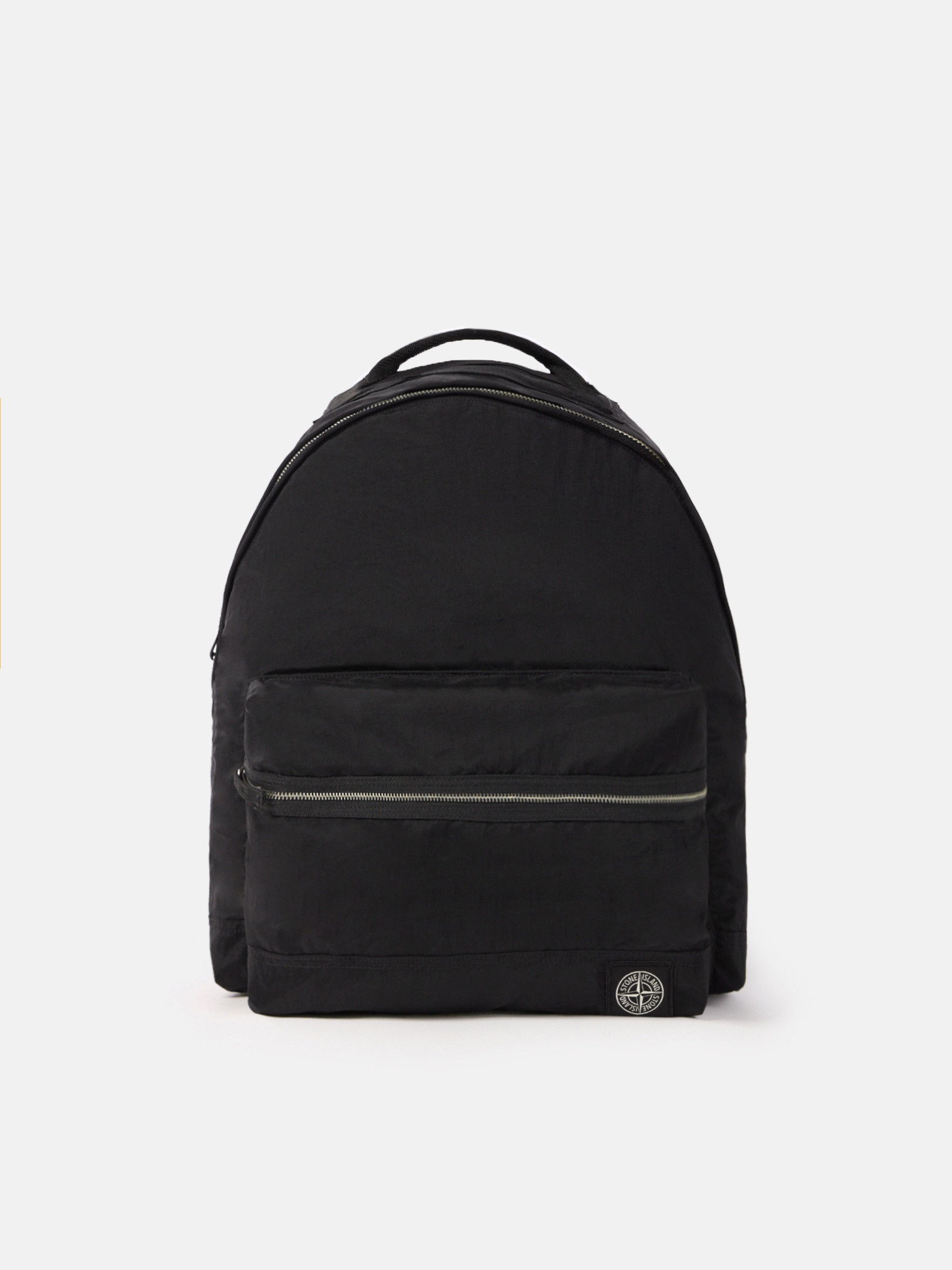 Backpack in Nylon Metal made from ECONYL® regenerated yarns with polyurethane coating, featuring a front zipper pocket, internal compartment, and a Compass logo patch. FABRIC RESEARCH AND TREATMENT Backpack in Stone Island's iridescent Nylon Metal fabric with polyurethane coating. The evolution of this iconic fabric sees the use of ECONYL® regenerated yarns: the life-ended nylon, pre- and post-consumer, is recycled with a complex depolymerization process to create this fiber that features the same intrinsic characteristics of nylon from fossil raw material. STYLE AND FIT Front bellows pocket with horizontal zipper and Stone Island Compass logo patch. Nylon ripstop lining. Internal compartment. Zipper fastening. Adjustable nylon tape shoulder straps. Top handle. COMPOSITION AND CARE External Fabric: 100% Polyamide / Nylon. Coating: 100% Polyurethanic Resin. Lining: 100% Polyamide / Nylon