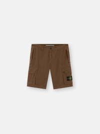 Cargo shorts in brushed organic cotton canvas, featuring multiple pockets. Garment dyed with the “OLD” treatment for a slightly worn appearance. FABRIC RESEARCH AND TREATMENT Cargo shorts in brushed organic cotton canvas. Garment dyed with the “OLD” treatment, an exclusive dyeing treatment and subsequent fading on the finished garment for a slightly worn and three-dimensional appearance. STYLE AND FIT Vertical hand pockets with fixed flap and concealed zipper. Bellows cargo pockets with flap and double snap. Stone Island badge on left cargo pocket. Angled back pocket with fixed flap and concealed snap. Zipper fly and button fastening. Slim fit. COMPOSITION AND CARE External Fabric: 100% Cotton Pocket Bag: 100% Cotton
