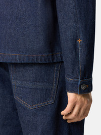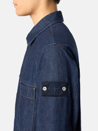 Coach jacket in 13.5oz denim woven from indigo-dyed organic cotton in a 4-thread twill weave, featuring chest pockets and the Stone Island Denim Research badge. Rinsed. FABRIC RESEARCH AND TREATMENT Coach jacket made from a 13.5oz denim, woven with indigo-dyed organic cotton yarn using a 4-thread twill weave that creates the signature diagonal pattern of denim. The finished garment is rinsed. STYLE AND FIT Yoke on front. Patch chest pockets with concealed snap. One internal standing chest pocket. Stone Island Denim Research badge with metal buttons on left sleeve. Button at cuffs with small star embroidery above right sleeve placket. All-over contrast stitching. Hidden button fastening inside double placket with one visible button at collar. COMPOSITION AND CARE 100% Cotton