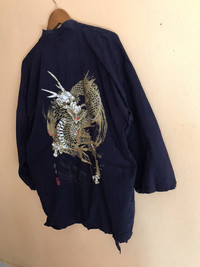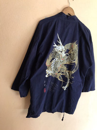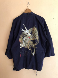 Cardigan - RARE VINTAGE KIMONO JAPAN DRAGON SAMURAI JACKET TRADITIONAL