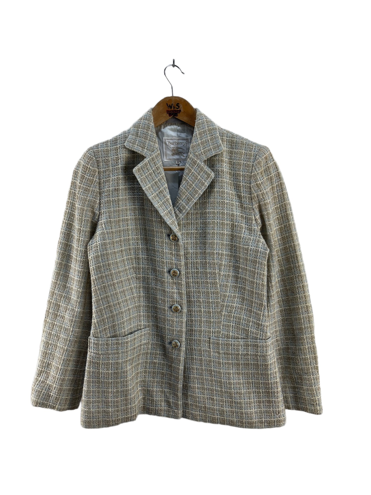 PLEASE READ DESCRIPTION CAREFULLY BEFORE BUYING Vintage Burberrys Tweed Jacket ACTUAL SIZE MEASUREMENT(approximately) : ARM PIT TO ARM PIT :- 18"inches LENGTH ( BACK COLLAR TO BOTTOM ):- 27"inches SHOULDERS :- 14.5”inches SLEEVE LENGTH:-23''inches Tag : Burberrys Ref Code : C3815