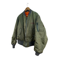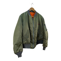 PLEASE READ DESCRIPTION CAREFULLY BEFORE BUYING Vintage Alpha Industries MA-1 Bomber Jacket Reversible ACTUAL SIZE MEASUREMENT(approximately) : ARM PIT TO ARM PIT :- 27.5"inches LENGTH ( BACK COLLAR TO BOTTOM ):- 25.5"inches SLEEVE LENGTH:-25''inches SHOULDERS :- 20”inches Tag : Alpha Industries Made in : USA Condition : Great Condition. Have minor stains. Commonly slightly faded due to ages and use. Please view and zoom our product pictures before purchased it. ************************************************************************ PAYMENT METHOD : All payment can be made via PAYPAL only. SHIPPING : After receiving cleared payment your item will be handle within 2-5 business days. WE ARE USING WORLDWIDE SHIPPING, IT TAKES 7-21 DAYS ONLY TO ARRIVE. PLEASE LEAVE YOUR PHONE NUMBER ON THE NOTE WHILE MAKE A PURCHASE AND PLEASE MAKE SURE YOUR ADDRESS IS COMPLETE AND CORRECT. CONDITION :- An item that has been used or worn previously. Please don't expect it to be like new or in pristine condition