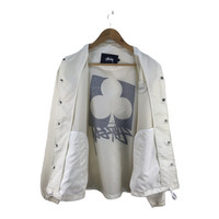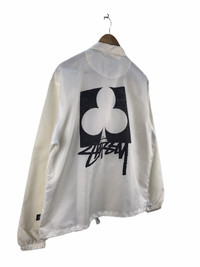 PLEASE READ DESCRIPTION CAREFULLY BEFORE BUYING Stussy Club White Windbreaker Jacket ACTUAL SIZE MEASUREMENT(approximately) : ARM PIT TO ARM PIT :- 23"inches LENGTH ( BACK COLLAR TO BOTTOM ):- 27"inches SLEEVE LENGTH:-24''inches SHOULDERS :- 21”inches Tag : Stussy Made in : China Condition : Great Condition. There is a hole on the jacket, thus I’ve repaired it. Commonly slightly faded due to ages and use. Please view and zoom our product pictures before purchased it. ************************************************************************ PAYMENT METHOD : All payment can be made via PAYPAL only. SHIPPING : After receiving cleared payment your item will be handle within 2-5 business days. WE ARE USING WORLDWIDE SHIPPING, IT TAKES 7-21 DAYS ONLY TO ARRIVE. PLEASE LEAVE YOUR PHONE NUMBER ON THE NOTE WHILE MAKE A PURCHASE AND PLEASE MAKE SURE YOUR ADDRESS IS COMPLETE AND CORRECT. CONDITION :- An item that has been used or worn previously. Please don't expect it to be like new or in pristine condition