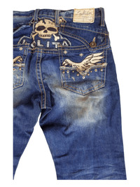 Crazy Lolita Skulls Embroidery Mud Max Jeans ➤ BRAND NAME : LOLITA MADE in Korea ➤ SIZE MANUAL MEASUREMENT / LAID FLAT (INCHES) WAIST : 14""( W28") LENGTH ; *Outseam : 39" *Inseam : 29.5" .......….............................................................. ➤✈️EXPRESS SHIPPING ✈️ The Items Will Be Shipped From Asia (Malaysia) Using DHL EXPRESS / ETA (5~8 Days) Worldwide Thank you so much for your visit!!! MZHseller