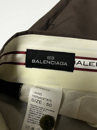 Balenciaga Trousers Pants Color: Choco Brown Guaranteed Authentic Size: 50 Waist: 32” Length: 42” Inseam: 29.5” Hip: 19.5” Thigh: 11.5” Leg Opening: 9 Front rise: 12” No Major Flaws Excellent Condition Material: Shell: 100% Cotton Lining: 100% Acetate Details: * buttons with Balenciaga Brand and Logo * Extra Buttons is in the wash care * Design on right pocket Embroidered BB balenciaga Logo * All closure buttons and trouser hooks have BB or Balenciaga Logo embossed. * Ykk zipper Measurement taken while laying flat. Please compare the measurement with your garment. I can negotiate the price including the shipping cost. Dont hesitate to ask us other details about the items and shipping fee cost Shipping via DHL Express ONLY. Please leave your phone number. ATTENTION: Please pay close attention to measurements provided. Don't rely on tag size as pre-worn items may have been altered, stretched or shrunk & vintage sizes do not directly translate the modern sizes.The best way to ensure a correct fit is to compare our measurements with the measurements of a similar item that you know fits you well. * I will not accept return if u can't fit it. As I already gave my manual measurement. Please enlarge the photos for clearer image * Please don't expect the goods to be in perfect condition unless stated in the description. It's because vintage and used items may have sign of wear. * If you have any questions feel free to ask because what I posted is what I sent, please be careful before buying be a smart buyer * ALL SALES ARE FINAL THANKYOU!