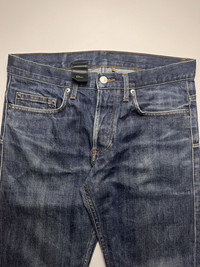 Dior Homme - Hedi Slimane 2000’s Selvedge Faded Jeans Waist: 15.5” Length: 35.5” Inseam: 26” Hip: 17” Thigh: 10” Knee: 9” Leg Opening: 7” Front rise: 9” Condition: Good condition with signs of use Flaw: length is altered An essential piece of menswear history from the peak of Hedi Slimane’s tenure at Dior Homme. These jeans represent the blueprint for the modern slim silhouette, constructed from premium heavy-weight Japanese raw indigo denim. This specific iteration features the highly coveted Red Selvedge detail, visible when cuffed—a hallmark of quality rarely seen in contemporary Dior mainline. The denim remains rigid, allowing the next owner to develop personalized honeycombs and fades. Finished with the signature "scar" stitch on the back pockets, Dior-engraved hardware, and the classic black leather jacron. A foundational piece for any archival Hedi Slimane collection. Made in Morocco (utilizing Japanese fabric). 100% Cotton ATTENTION: Check the measurements carefully! Tag sizes may be inaccurate due to wear, alterations, or vintage sizing. For the best fit, compare our measurements with a similar item that fits you well. * 📦 Shipping via DHL express From Philippines with Tracking Number * ETA: 3-5 days ALL SALES ARE FINAL THANKYOU!
