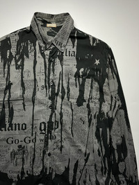John Galliano Gazette Newspaper Print Long Sleeve Shirt Size: 46 Width: 22” Length: 31” Shoulder: 18” Sleeve Length: 26” Hem: 21” measured in inches Condition: Excellent condition with no visible flaws Vintage John Galliano Newspaper Print Shirt Classic Y2K era designer piece from the John Galliano label (pre-Margiela era). Shirt features Galliano’s iconic newspaper/gazette motif all-over print in charcoal and black, long sleeves, button-down front, and collared neckline. A rare graphic designer piece perfect for collectors of early-2000s fashion and Galliano archival pieces. Will pair well with streetwear or vintage high fashion fits. Made in Italy 100% Cotton ATTENTION: Check the measurements carefully! Tag sizes may be inaccurate due to wear, alterations, or vintage sizing. For the best fit, compare our measurements with a similar item that fits you well. * 📦 Shipping via DHL express From Philippines with Tracking Number * ETA: 3-5 days ALL SALES ARE FINAL THANKYOU!