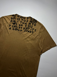 Maison Martin Margiela Iconic AIDS Awareness Charity V-Neck T-Shirt Size: 1 Width: 22” Length: 31” Shoulder: 17” Sleeve Length: 11” Hem: 23” measured in inches Flaw: removable rust stain Very Good condition An essential and historic piece of Maison Margiela's legacy. This is the instantly recognizable AIDS Awareness Charity T-Shirt, originally designed by Martin Margiela himself in 1994, with a portion of proceeds continually donated to the French non-profit organization, AIDES. The shirt features the poignant and thought-provoking slogan—"THERE IS MORE ACTION TO BE DONE TO FIGHT AIDS THAN TO WEAR THIS T SHIRT BUT IT'S A GOOD START"—screen-printed on the inside of the v-neckline. This placement is intentional: it makes the text slightly obscured when worn, forcing curiosity and initiating a dialogue about the cause. The text is visible on the outside of the back of the neck in a broken, stenciled font. Made in Italy S32GC9998 ATTENTION: Check the measurements carefully! Tag sizes may be inaccurate due to wear, alterations, or vintage sizing. For the best fit, compare our measurements with a similar item that fits you well. * I will not accept return if u can't fit it. As I already gave my manual measurement. Please enlarge the photos for clearer image * please be careful before buying be a smart buyer * 📦 Shipping via DHL express From Philippines with Tracking Number * ETA: 3-5 days ALL SALES ARE FINAL THANKYOU!
