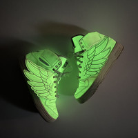 Adidas x Jeremy Scott JS Wings Glow in the Dark GID - 2011 RARE Size: 7½ | UK 7 | FR 40⅔ | JP 255 | CHN 250 Made in Indonesia One of the most iconic silhouettes from the legendary Jeremy Scott x adidas Originals collaboration — the JS Wings GID (Glow in the Dark). Released in 2011, this standout pair embodies Jeremy Scott’s bold, era-defining vision. In natural light, it features a clean cream/off-white finish. In the dark, the entire leather upper and signature wings glow in a vibrant neon green. A true collector’s piece and a statement sneaker from one of adidas’ most memorable collaborations. Condition: Very Good Condition with signs of use Flaw: Dirts stain (needs Cleaning) ATTENTION: Check the Condition measurements carefully! *No return, No refund. Ask before Buy! * please be careful before buying be a smart buyer * Shipping via DHL express with Tracking Number *ETA: 3-5 days ALL SALES ARE FINAL THANKYOU!