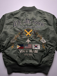 Avirex U.S. Air Force Vietnam War MA-1 Reversible Bomber Jacket Size: Medium Width: 21” Length: 22” Shoulder: 15” Sleeve Length: 24” Waist: 16” Hem: 14” No Flaw Excellent Condition Style: MA-1 Bomber Jacket STYLE No. 6262085 Color: Military Green (Olive) with Orange Lining This jacket is a must-have for collectors, military enthusiasts, and vintage fashion lovers, offering both style and historical significance. Perfect for streetwear, casual outfits, or as a statement piece. ATTENTION: Check the measurements carefully! Tag sizes may be inaccurate due to wear, alterations, or vintage sizing. For the best fit, compare our measurements with a similar item that fits you well. * I will not accept return if u can't fit it. As I already gave my manual measurement. Please enlarge the photos for clearer image * please be careful before buying be a smart buyer * Shipping via DHL express with Tracking Number ALL SALES ARE FINAL THANKYOU!