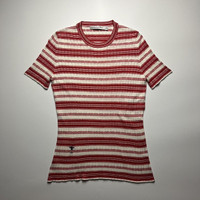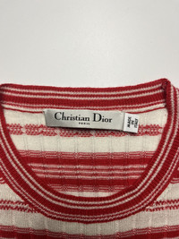 Christian Dior striped ribbed knit T-shirt. Size: F 36 | GB 8 | I 40 | D 34 | USA 4 Width: 16” Length: 25” Shoulder: 13” Sleeve Length: 8.5” Hem: 17” No Flaw Excellent Condition Made in Italy Material: 50% Cashmere 30% Silk 10% Polyamide 10% Viscose Style code: 4H24572AM560 -Small embroidered bee logo near the bottom left, a signature Dior detail. -This vintage-style top has a chic, timeless aesthetic, perfect for casual or elevated styling. Measurement taken while laying flat. Please compare the measurement with your garment. I can negotiate the price including the shipping cost. Dont hesitate to ask us other details about the items and shipping fee cost Shipping via DHL Express ONLY. Please leave your phone number. ATTENTION: Please pay close attention to measurements provided. Don't rely on tag size as pre-worn items may have been altered, stretched or shrunk & vintage sizes do not directly translate the modern sizes.The best way to ensure a correct fit is to compare our measurements with the measurements of a similar item that you know fits you well. * I will not accept return if u can't fit it. As I already gave my manual measurement. Please enlarge the photos for clearer image * Please don't expect the goods to be in perfect condition unless stated in the description. It's because vintage and used items may have sign of wear. * If you have any questions feel free to ask because what I posted is what I sent, please be careful before buying be a smart buyer * ALL SALES ARE FINAL THANKYOU!