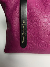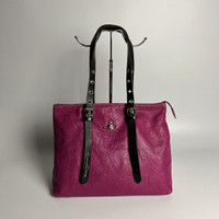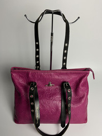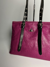 Rare! Vintage Vivienne Westwood Pink Tote Color: He Fuchsia Pink Width: 18" Height: 11.7" Depth: 7" Handle Drop: 10" Measured in Inches Flaw: Leather Tear on the bottom part (minor) Very Good Condition -embossed leather with skulls, ornament, Hearts Orb and the words “LET IT ROCK!” -Adjustable riveted shoulder straps with Vivienne Westwood label name