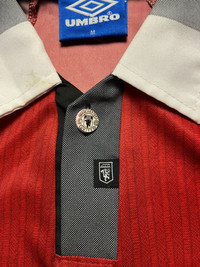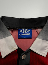 Vintage Manchester United 1996-98 Home Shirt Size: Medium on tag Width: 22.5” Length: 29 Shoulder: Sleeve Length: Hem: 21” Flaw: The Official Licensed print got burnt to Steamer. But it’s just the top “umbro” print. And also got Light stain on collar, it’s washable for sure. That’s all and no Other flaws I would declare as Good As New if it didn’t burnt, but it got the minor flaws so I’ll give it a Good Condition rate. The Manchester United 1996-98 Home Shirt as worn by Cantona, Keane, Solskjær, Pallister and Beckham during Eric Cantona's last season with the club when he scored a sublime chip against Sunderland on the way to the side winning the league title. Manufactured by Umbro. Hard to obtain nowadays. Original Version! Not a Modern Remake! A SHIRT THAT SO MANY UNITED FANS AND COLLECTORS WANT BUT JUST CAN'T GET HOLD OF, SO DO NOT MISS OUT Details: * Buttons with “Manchester United” Logo Measurement taken while laying flat. Please compare the measurement with your garment. I can negotiate the price including the shipping cost. Dont hesitate to ask us other details about the items and shipping fee cost Shipping via DHL Express ONLY. Please leave your phone number. ATTENTION: Please pay close attention to measurements provided. Don't rely on tag size as pre-worn items may have been altered, stretched or shrunk & vintage sizes do not directly translate the modern sizes.The best way to ensure a correct fit is to compare our measurements with the measurements of a similar item that you know fits you well. * I will not accept return if u can't fit it. As I already gave my manual measurement. Please enlarge the photos for clearer image * Please don't expect the goods to be in perfect condition unless stated in the description. It's because vintage and used items may have sign of wear. * If you have any questions feel free to ask because what I posted is what I sent, please be careful before buying be a smart buyer * ALL SALES ARE FINAL THANKYOU!