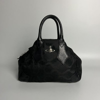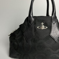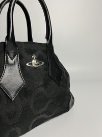 Vivienne Westwood Squiggle in Black Yasmin Bag Width: 11.5” Height: 8” Depth: 5” Drop: 4.5” Flaws: 1. Rust on hardware metal rings that attach the handles to the bag. 2.Scratches and scuffs. 3.The edges around zipper has frayed and worn. 4.Rubs on edges with minor tear on edges too. Overall still in Good condition Origin: First appeared in the Vivienne Westwood Autumn-Winter 1987/88 "Time Machine" collection. Material & Details: Features a jacquard pattern inspired by 18th-century tea towels, a zip fastening, top handle, and metal base studs ATTENTION: Check the Condition measurements carefully! *No return, No refund. Ask before Buy! * please be careful before buying be a smart buyer * Shipping via DHL express with Tracking Number ALL SALES ARE FINAL THANKYOU!