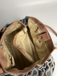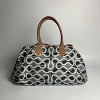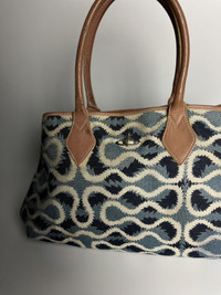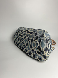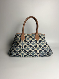 Vintage Vivienne Westwood Squiggle in Blue Big Tote Bag Width: 22" Height: 14" Depth: 13" Handle Drop: 8" Measured in Inches Flaw/s: it shows visible sign of usage 1.On the bottom right, the white part have blue-ish color stain 2.Leather stain and mark 3.Loose Stitching inside Pouch (see last photo) Very Good condition -it has huge capacity -the bag is like a duffle bag for this size but it’s actually a tote bag -magnetic snap closure -extra big pouch on the middle inside