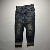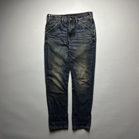 Pure Indigo Gritty Selvedge Denim Jeans 14oz Size: 31 on tag Waist: 31” - 32” Length: 41” Inseam: 30 Hip: 19” Thigh: 12” Knee: 10” Leg Opening: 7” Front rise: 11.5” Flaw: Signs of wear, Minor tattered on hem Good Vintage Condition Made in China 100% Cotton ATTENTION: Check the measurements carefully! Tag sizes may be inaccurate due to wear, alterations, or vintage sizing. For the best fit, compare our measurements with a similar item that fits you well. * I will not accept return if u can't fit it. As I already gave my manual measurement. Please enlarge the photos for clearer image * please be careful before buying be a smart buyer * 📦 Shipping via DHL express From Philippines with Tracking Number * ETA: 3-5 days ALL SALES ARE FINAL THANKYOU!