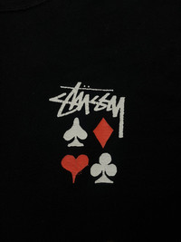 Stussy Full Deck 2 T-Shirt Size: X-Large Width: 24” Length: 30” Flaw: Crackprints Good condition ATTENTION: Check the measurements carefully! Tag sizes may be inaccurate due to wear, alterations, or vintage sizing. For the best fit, compare our measurements with a similar item that fits you well. * I will not accept return if u can't fit it. As I already gave my manual measurement. Please enlarge the photos for clearer image * please be careful before buying be a smart buyer * 📦 Shipping via DHL express From Philippines with Tracking Number * ETA: 3-5 days ALL SALES ARE FINAL THANKYOU!