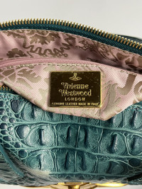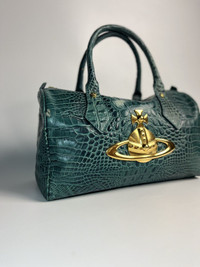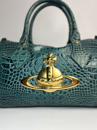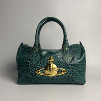 RARE Vivienne Westwood Crocodile Embossed Boston Bag - Deep Emerald Green Width: 13” Height: 8” Depth: 6” Handle Drop: 6” Measured in Inches This emerald-green Vivienne Westwood Boston bag captures everything fans love about the brand — bold attitude, punk-luxury styling, and the iconic oversized gold Orb front and center. The croc-embossed leather adds a rich, dramatic texture that instantly stands out. Bags with this exact combination — croc embossing + large 3D Orb hardware — were not mass-produced and rarely show up in good condition today. Collectors consider this style a standout vintage Westwood piece, often used in editorials and sought after for its iconic, statement-making look. Because Westwood releases many small seasonal runs and these designs are heavily replicated, authentic versions like this remain genuinely hard to find and highly desirable. Flaw: Rubs on corners and Discoloration on the exterior leather. It can be repaint by professional care. -Very Good vintage condition -Made in Italy -Gold Hardware -YKK & OPTI ZIPPER ATTENTION: Check the Condition measurements carefully! *No return, No refund. Ask before Buy! * please be careful before buying be a smart buyer * Shipping via DHL express with Tracking Number *ETA: 3-5 days ALL SALES ARE FINAL THANKYOU!