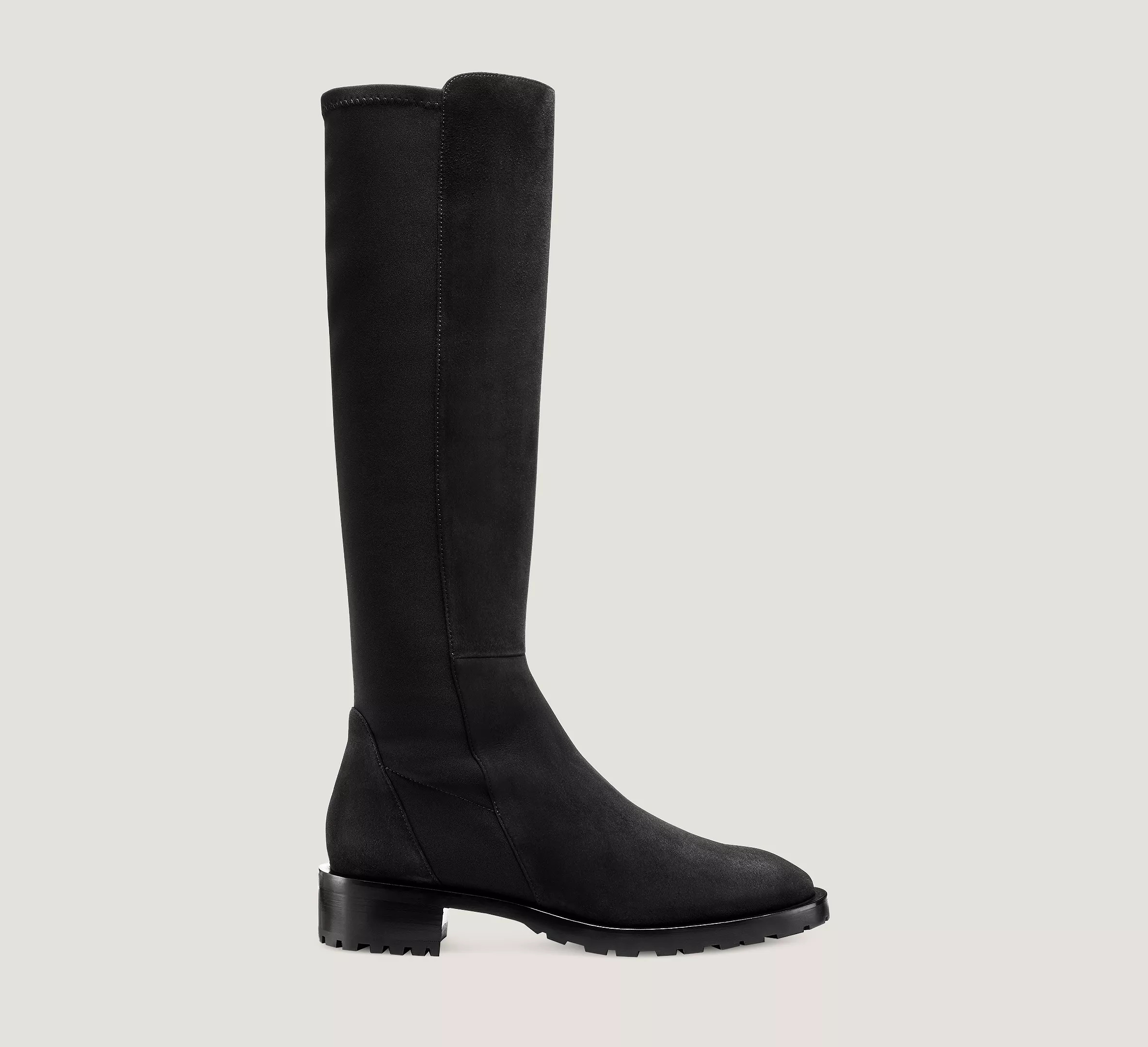 Editor's Notes Master the lug sole trend with the 5050 KNEE-HIGH LUG BOOT, a to-the-knee take on our iconic back-stretch BOOT. Part of our 5050 Collection, this timeless, minimalist design embodies fashion and function: It features our signature microstretch back for a flawless and comfortable fit, and its lightweight lug sole instantly infuses modern edge into any look. Product Details MEASUREMENTS Heel Height: 1.5", 38 mm Shaft Height: 15.9", 41 cm Shaft Circumference: 5.9", 15 cm All measurements are made on a size 6 shoe. There may be slight measurement variations based on size. FEATURES Boot Knee-high Flat block heel Almond toe Pull-on with stretch back Back-stretch construction Lightweight lug sole Inspired by the iconic 5050 Part of the 5050 Collection MATERIALS Suede Leather insole Rubber outsole MADE IN SPAIN