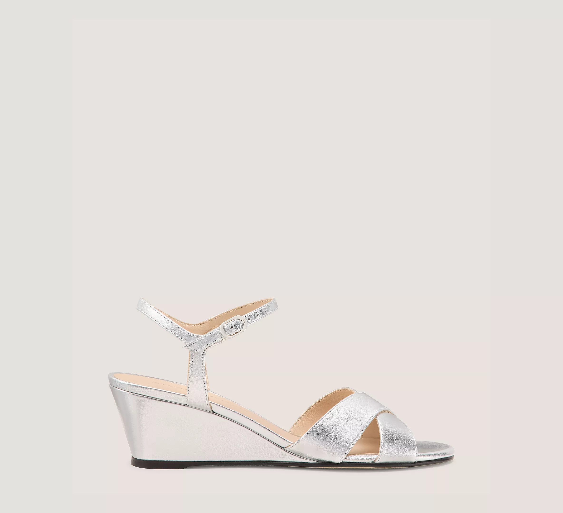 EDITOR'S NOTES Elevate your everyday outfits with the DAYNA DEMI WEDGE. Inspired by our customer-favorite DAYNA PLATFORM sandal, it features the same crossover toe straps and sleek, adjustable ankle strap. A 50-mm wedge infuses heightened sophistication into the look without sacrificing comfort. PRODUCT DETAILS MEASUREMENTS Heel Height: 2", 50 mm All measurements are made on a size 6 shoe. There may be slight measurement variations based on size. FEATURES Sandal Wedge Round toe Adjustable ankle strap MATERIALS Liquid Metallic Leather Leather insole Leather outsole